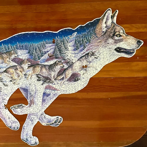 A wolf‑themed puzzle — unconventional in shape yet rich in detail — that appeals to nature lovers and those seeking something beyond the typical rectangular format.